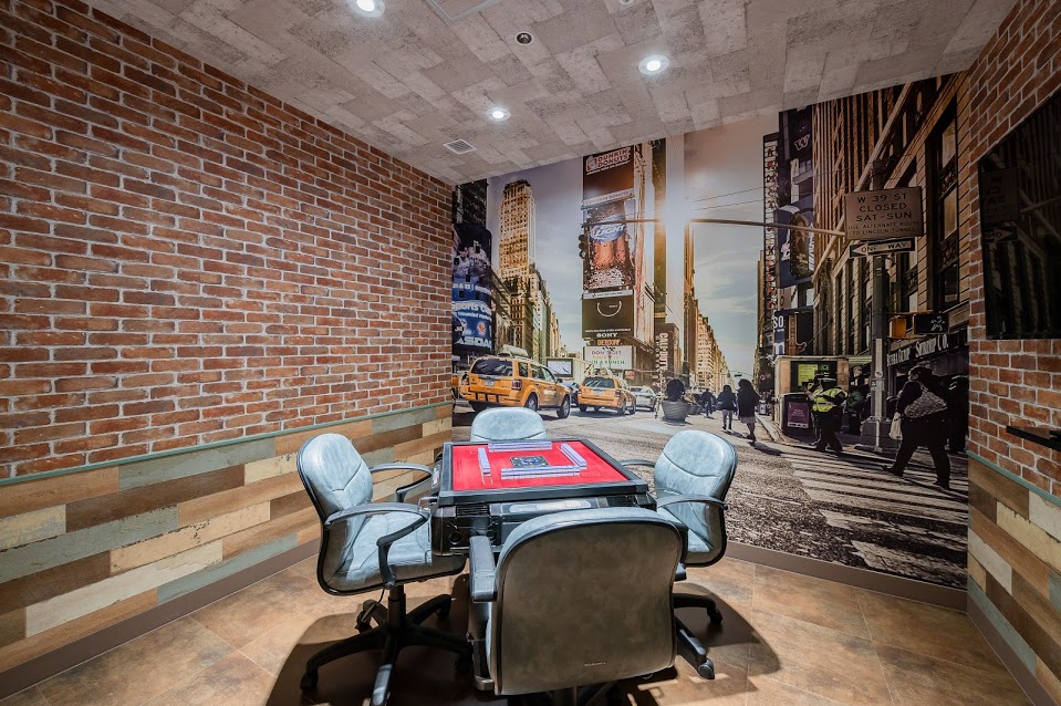 完全個室の各部屋では、年配の方でも見やすい大きな牌を採用しました。全客室の壁紙は全て異なるものを採用し、50インチテレビを壁付けし、麻雀部屋とは思えないスタイリッシュな空間を演出。客室タイプもスタンダードなものから、マッサージチェアのあるVIPルーム、大会でも使用できる12卓のGルームなど、幅広いお客様に対応しています。また、独自で麻雀大会を開催したい方など、些細なことでもスタッフが丁寧にサポートさせていただきます。